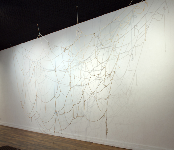 A scale diagram of the primary interstate highways in the lower 48 states. Each cord corresponds to one interstate, and are tied together at the points on their routes where they intersect. Though the shape of the network is distorted by the free-hanging cords, the distances are preserved, creating an accurate representation, if not an accurate map.
